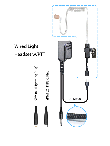 iSPM100-N0 | Light Duty wired speaker mic for iOS and Android Plug and Play, auto power on/off, very long use time, whather proof |