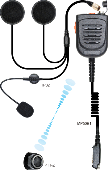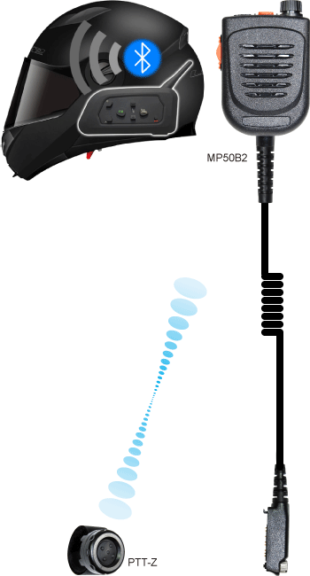 MP50B1 | Wired heavy duty speaker microphone with wireless PTT Power from radio. PTT-Z with BLE technoledge with one year life time. Quick discounect plug for motorcycle headset. Testing video https://youtu.be/OhTZnTUrsrc |