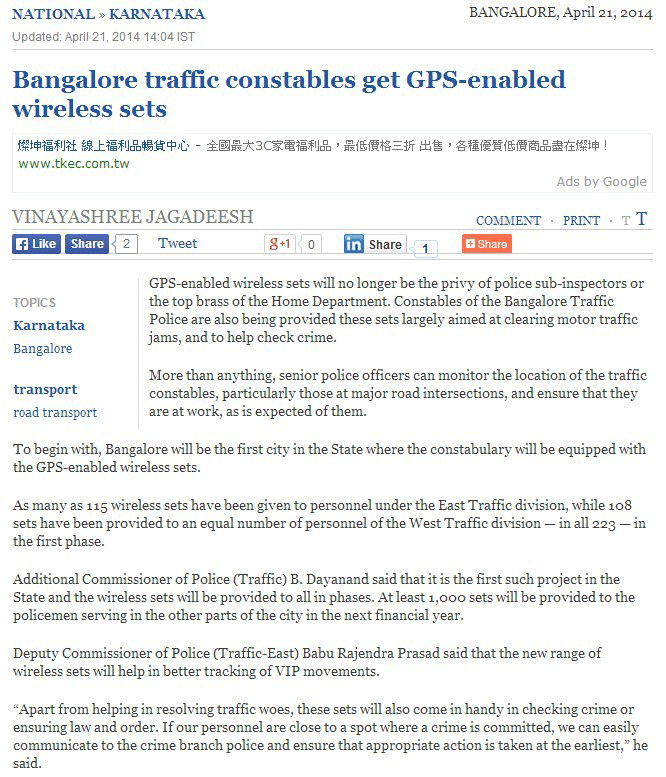 Bangalore Police Officer adopt MobilitySound GPS Microphone to their radios.
